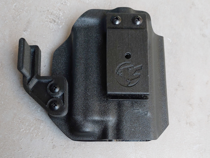 Zmiana konfiguracji IWB/OWB odbywa się poprzez odkręcenie tylnego panelu oraz przełożenie szlufki w odpowiednie miejsce – to trwałe i niezawodne rozwiązanie dla użytkowników, którzy oczekują jednej kabury do różnych zadań.