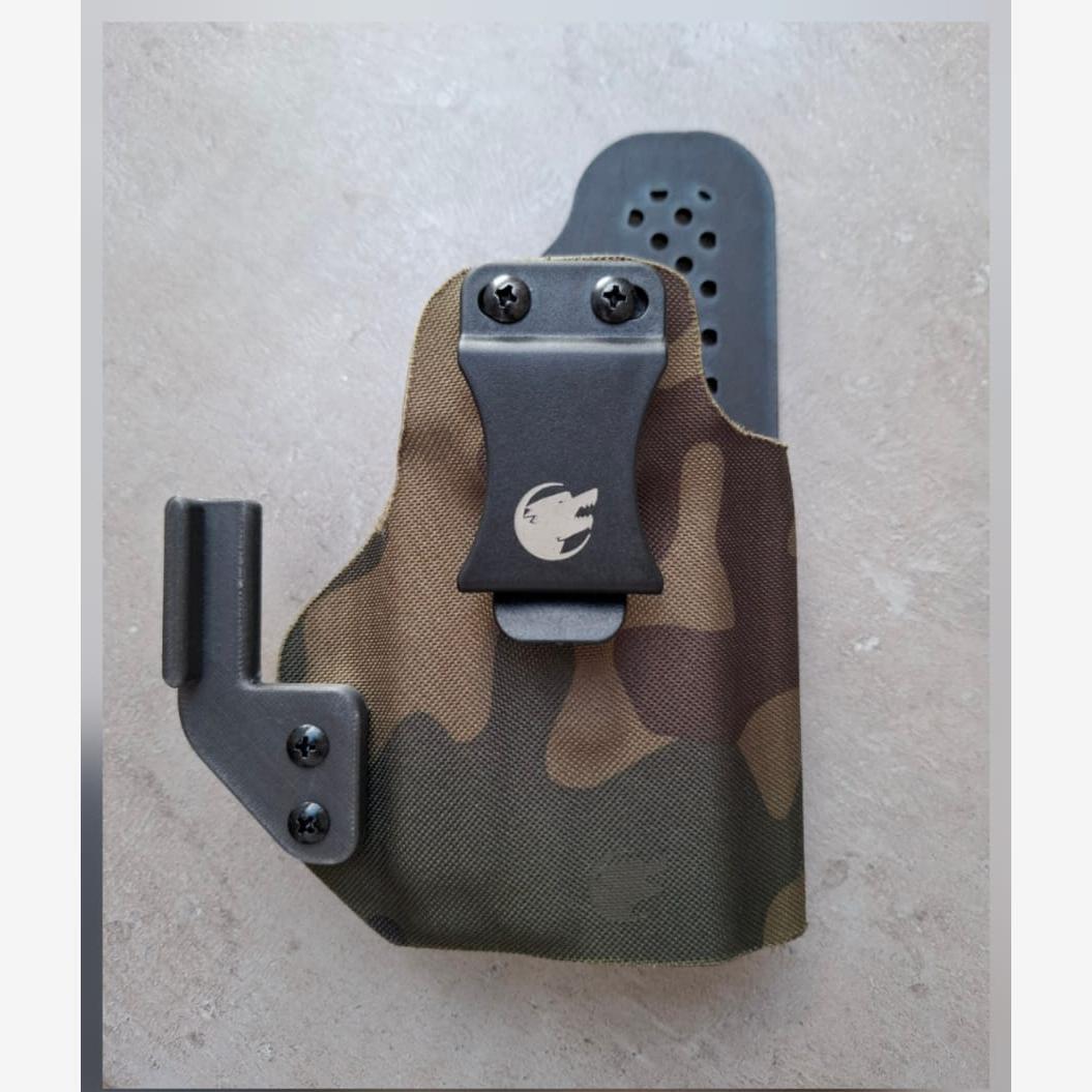 Apex Hybrid to wewnętrzna hybrydowa kabura appendix z możliwością montażu OWB, przeznaczona do broni bez latarki taktycznej. Jej konstrukcja różni się od klasycznych hybryd tym, że Kydex osłania broń z obu stron — a tylny panel skórzany jest precyzyjnie docięty i perforowany, a następnie trwale połączony z formowanym Kydexem. To rozwiązanie zwiększa sztywność, komfort i trwałość kabury.